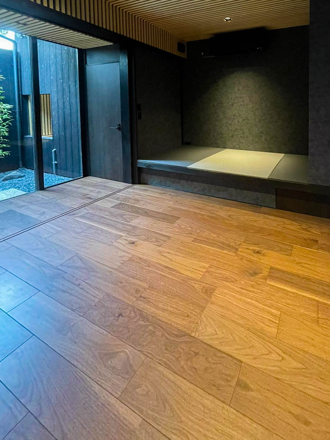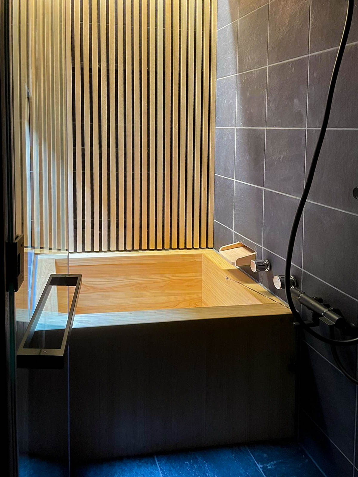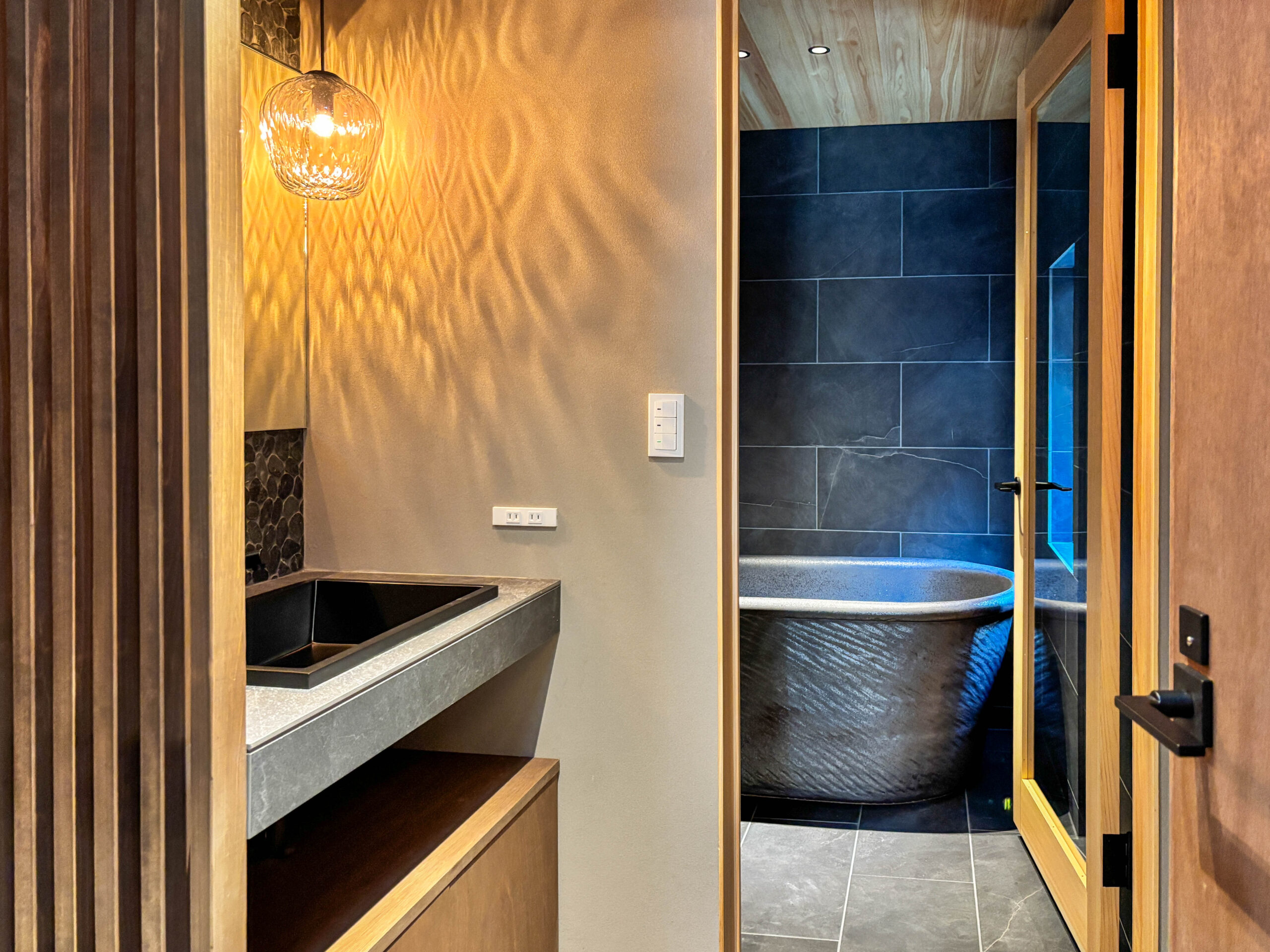 白馬山麓の私有地に建つ550m2の温泉付きモダンレジデンス。 古い農家を改築し、日本の広葉樹を使ったモダンな大きな家で、温泉棟に隣接している。 完成は2023年のクリスマスの予定だ。